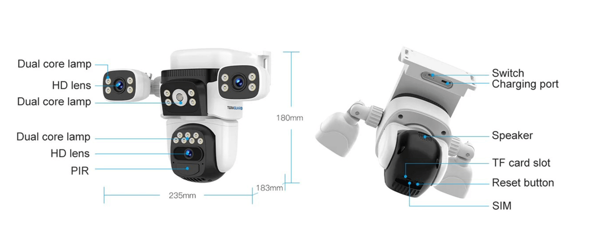 מצלמת האבטחה הסולארית TGM3723-B משלבת בין חיבור 4G יציב, צילום חכם רב-ערוצי וצריכת חשמל אולטרה-נמוכה. עם סוללה מובנית של ‎8000mAh
