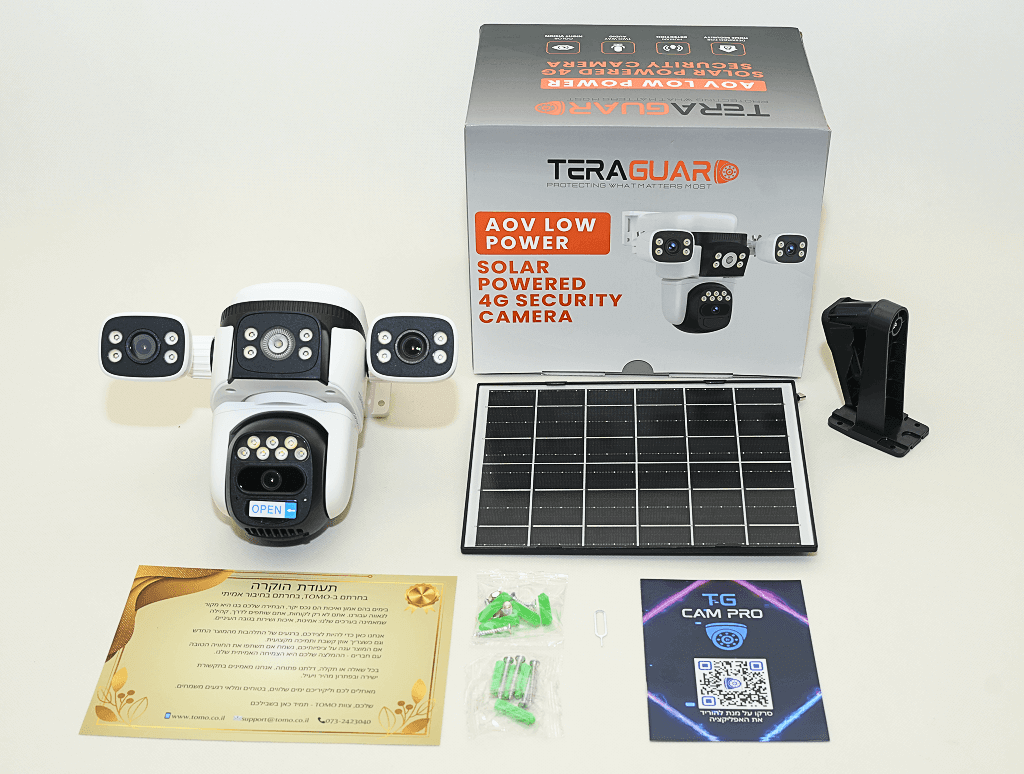 מצלמת אבטחה מקצועית סולארית 4G חכמה עם פאנל סולארי מתנה – TGM3723-B – תמיכה מלאה בעברית!